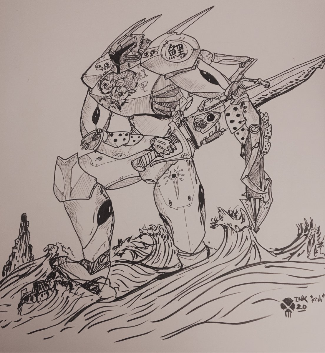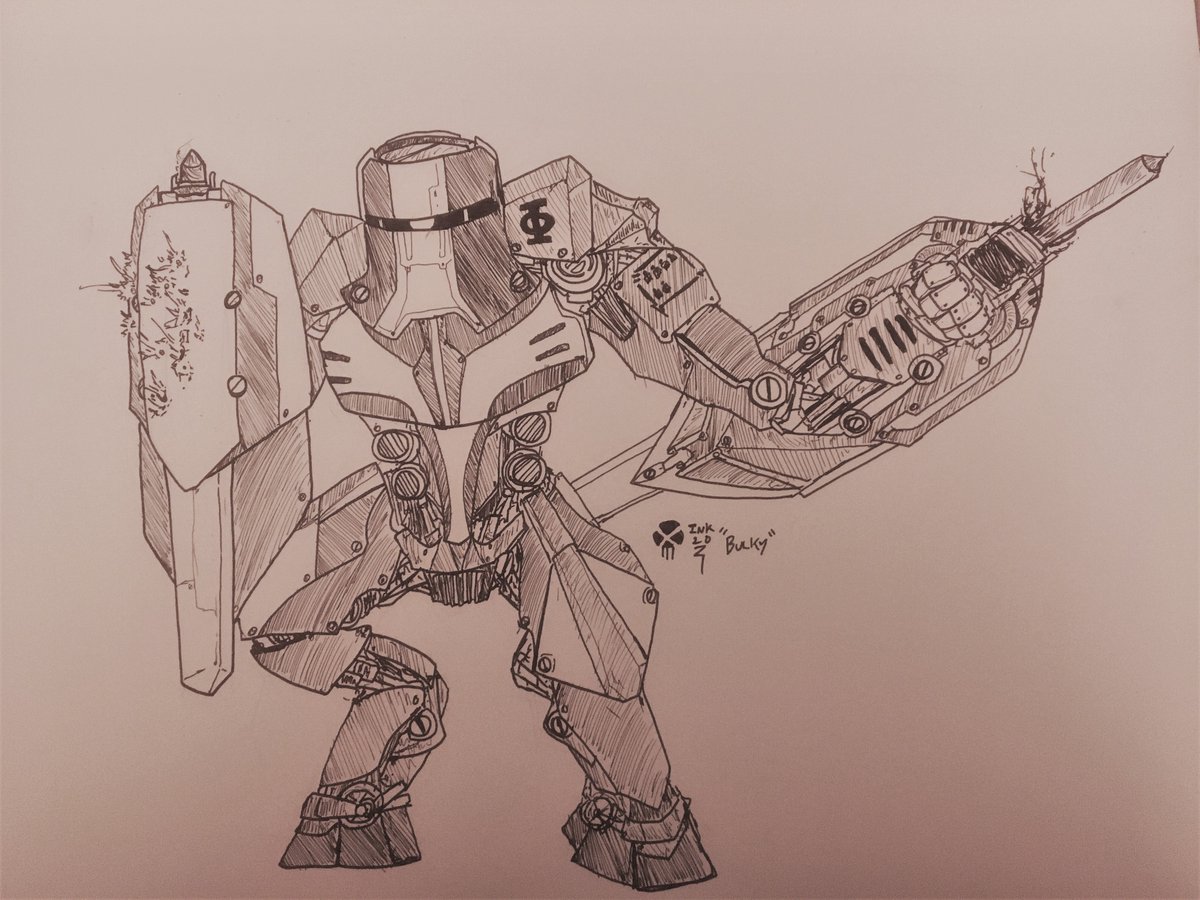 #inktober day 3: This time with Pilebunkers! I wanted a more Cherno Alpha kind of design here, and I think I got it. A little bit of Cherno, a little bit of Zaku, and a whole lot of armor. #inktober2020 #inktober2020day3