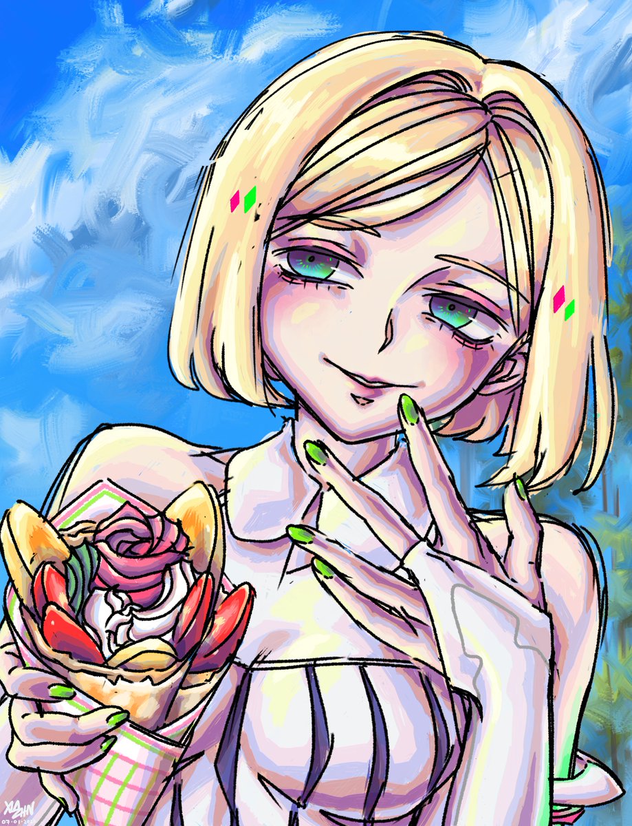 26 78 A little crepe tasting detour🍓🍌 Flavor "Rose of the Crepe" (lol) #アロ絵 #sketch 🍎🍏 23/07/02 11:17