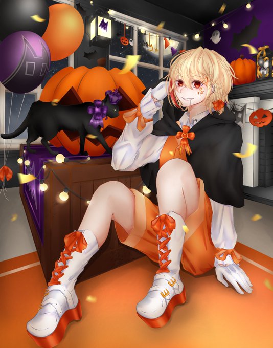 ハッピーハロウィン♪ 🐈⬛🌙🎃🧋 #96猫絵 #天月イラスト部