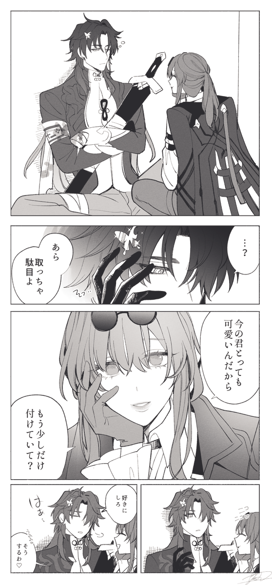 177 794 色々情報出る前に描いてたやつなんだけど刃とカフカの関係性解釈大きくは間違っては無かったなという漫画 23/07/16 21:20