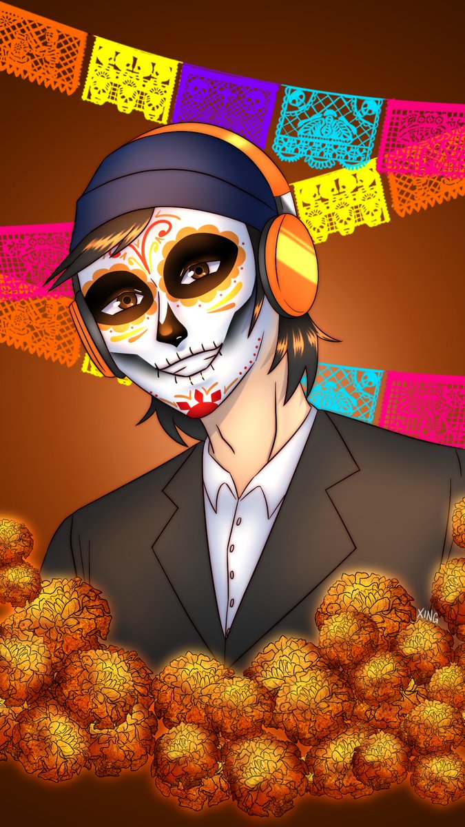 WHAT'S UP TWITTER TAKE MY CALAVERA QUACKITY FANART I KNOW IT'S NOT DÍA DE LOS MUERTOS/DAY OF THE DEAD, BUT I REALLY WANTED TO DRAW CALAVERA ART #quackityfanart
