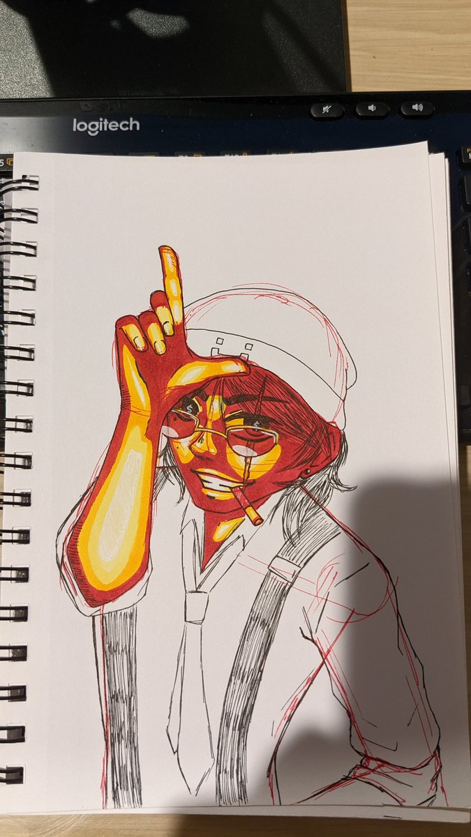 Day 6 of drawing @Quackity from Las Nevadas to manifest free Las Nevadas merch from @QuackGiveaways and @QuackityMerchh and @LasNevadasReal 👀 WIP again bc I wanna watch TV ehe 😅 #quackityfanart #lasnevadasfanart #lonelyking