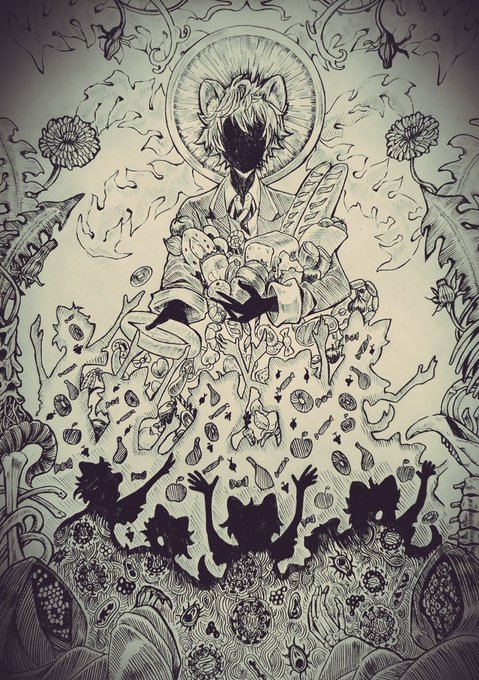 『不忠者ノ肖像』 従者とは影 その全ては光の意のままに 光無くして影は無く 故に影に自由は無い 然るに今奸佞の臣は 従属の定めを翻し 主たる金天を浸蝕する #ツイステファンアート #ジャミル・バイパー