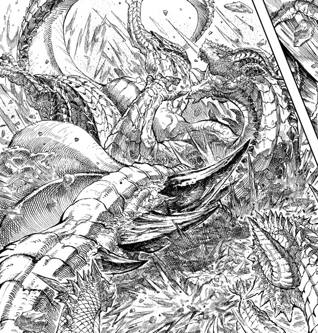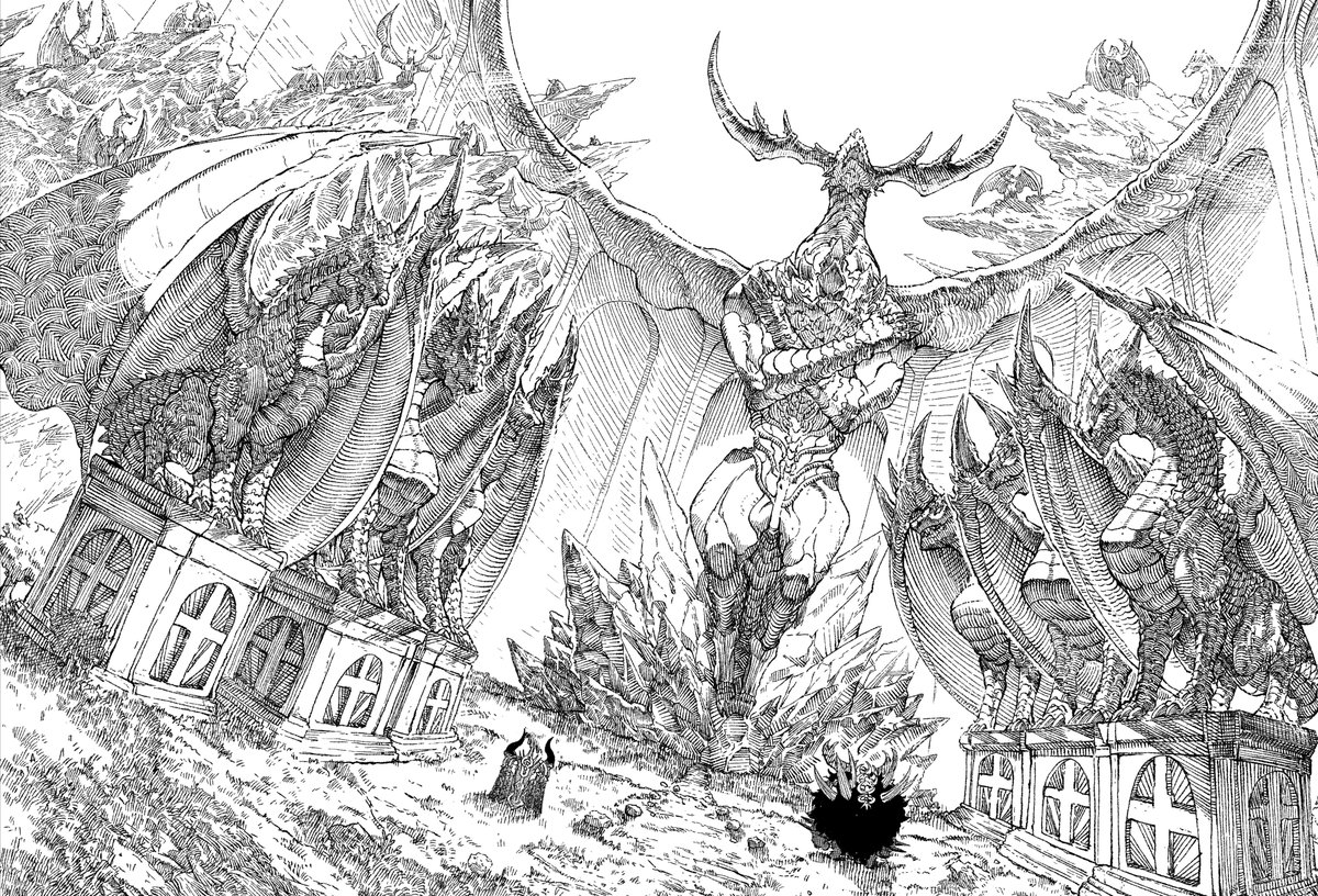 こういう超王道ドラゴンを手書きで誤魔化さずガンガン描いてる漫画結構少ないと思うんですよね 頑張りに乾杯