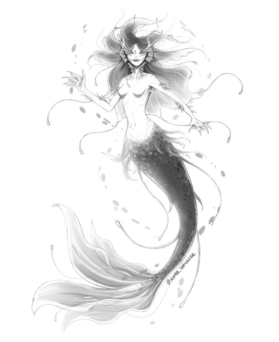 Siren 🧜🏻♀️ #digitalartwork #digitalart #illustration #inktober2021 #inktober #lineart #ENVtuber #drawing