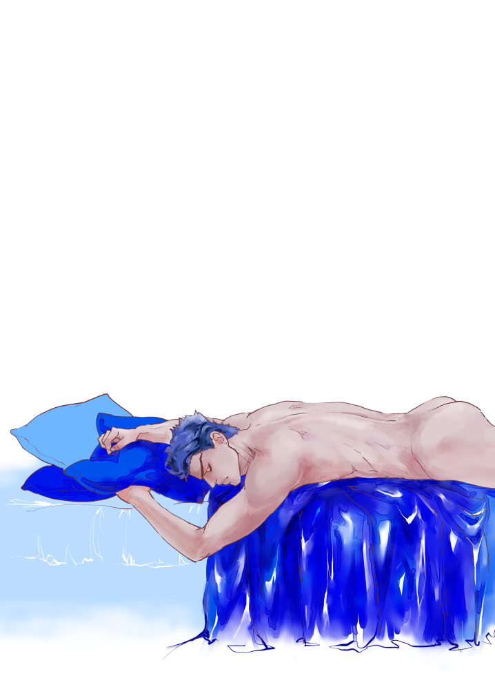 寝姿、いちおう着ていないので。