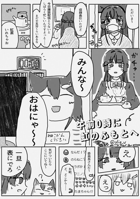 54 470 委員長の部屋にライバーがみんな飛んできちゃうマンガ 「午前0時に虹のふもとへ」 (『超・にじさん次元』掲載) (1/2) 23/08/05 17:47