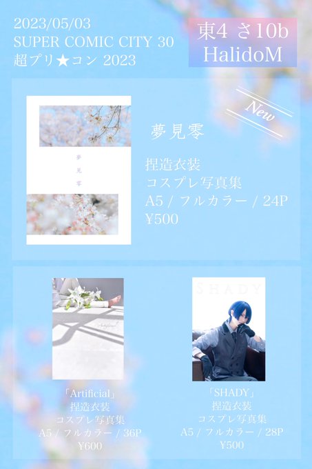 18 33 コスプレ⚠️捏造衣装 5/3スパコミ【東4 さ10b】お品書き 聖川真斗くんのコスプレ写真集を配布いたします。 新刊以外は少数部です。 プリコンにサークル参加するのがすごく久しぶりで震えてると思うので、遊びに来てくださると嬉しいです☺️ 宜しくお願いします レンマササークルさんたち遠くて寂し🥲 23/04/23 02:06