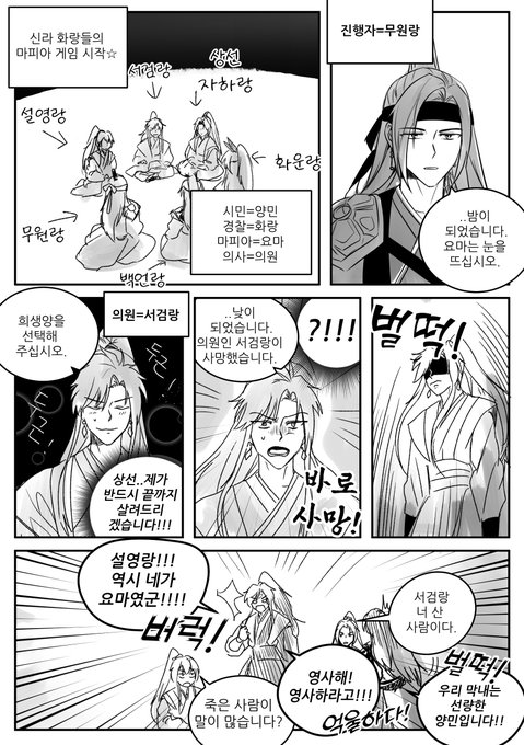 389 456 #진혼기 마피아 게임하는 화랑들 뻘만화 *캐붕주의* 23/01/16 20:20