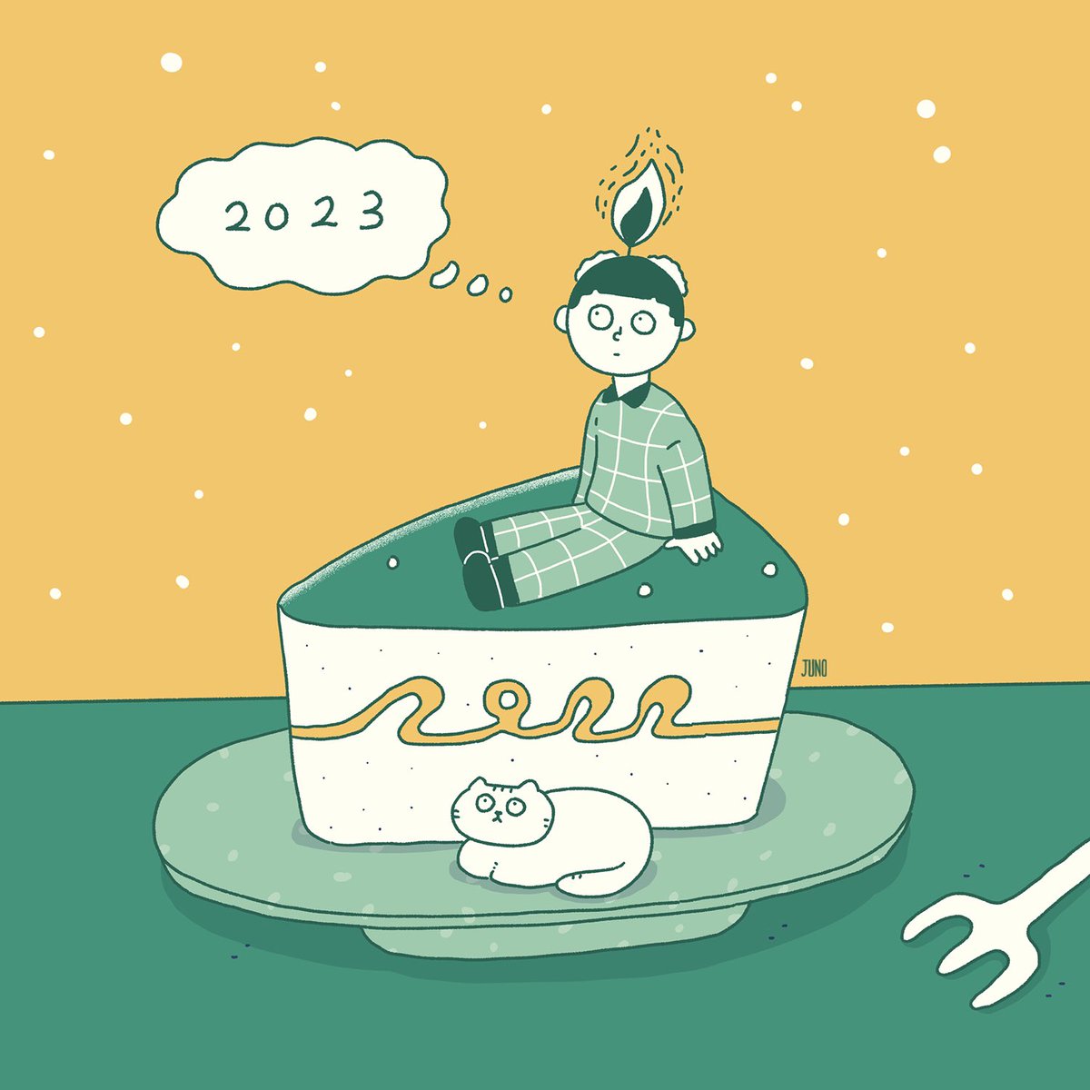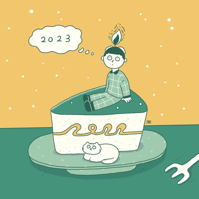 7 124 2022 -> 2023 🍰🔥 #イラスト #ゆるいイラスト 22/12/31 11:32