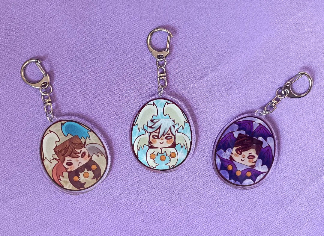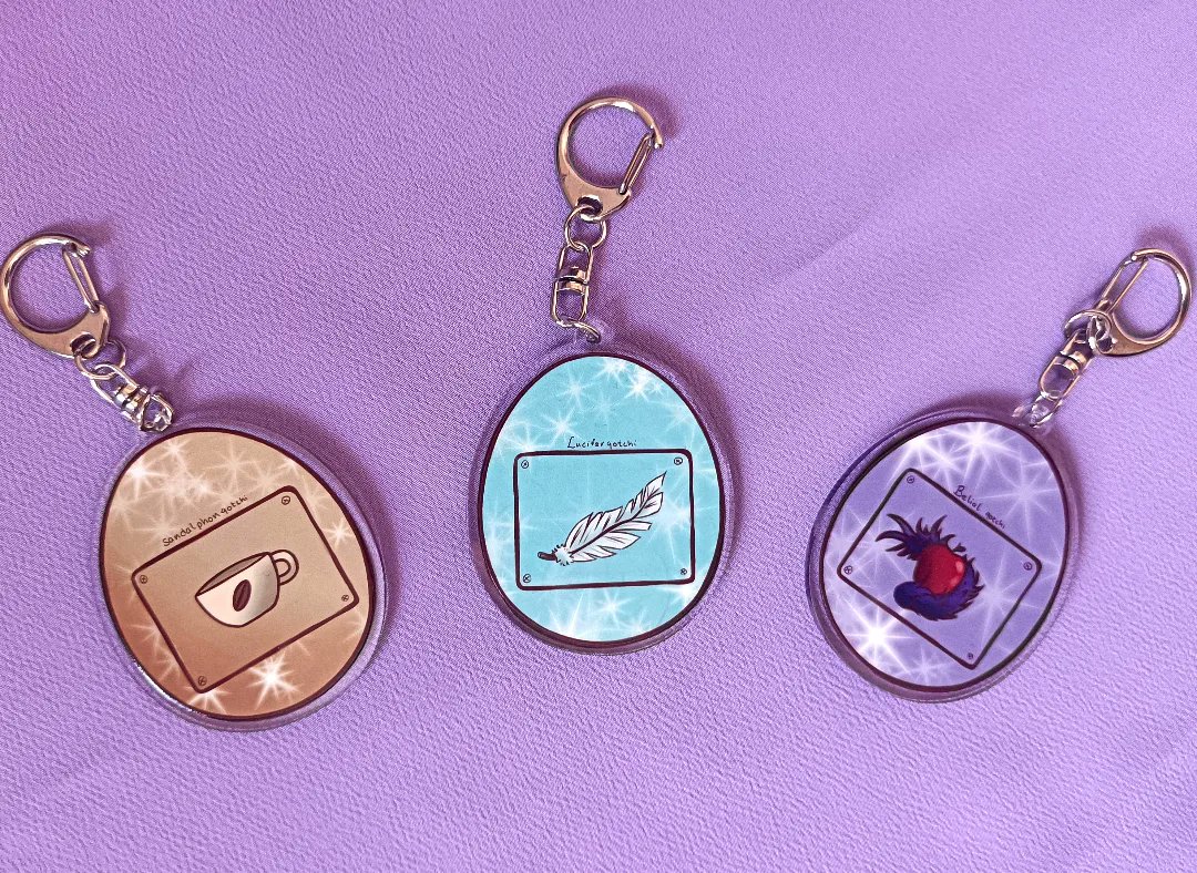 ☁️My gbf tamagochi keychains arrived!☁️ The characters avalible are Sandalphon☕, Lucifer🪶 and Belial🍎These will probably be on sale on upcoming conventions and on my online store which is closed rn but im working on it so it can be opened soon! 👀 #グラブルファンアート #gbf