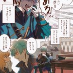 🎨こいなな展示物 今朝から団長と目が合うとそらすを続けているエマ アルビトロカフェにて(アレエマ) #ymkr男女CP
