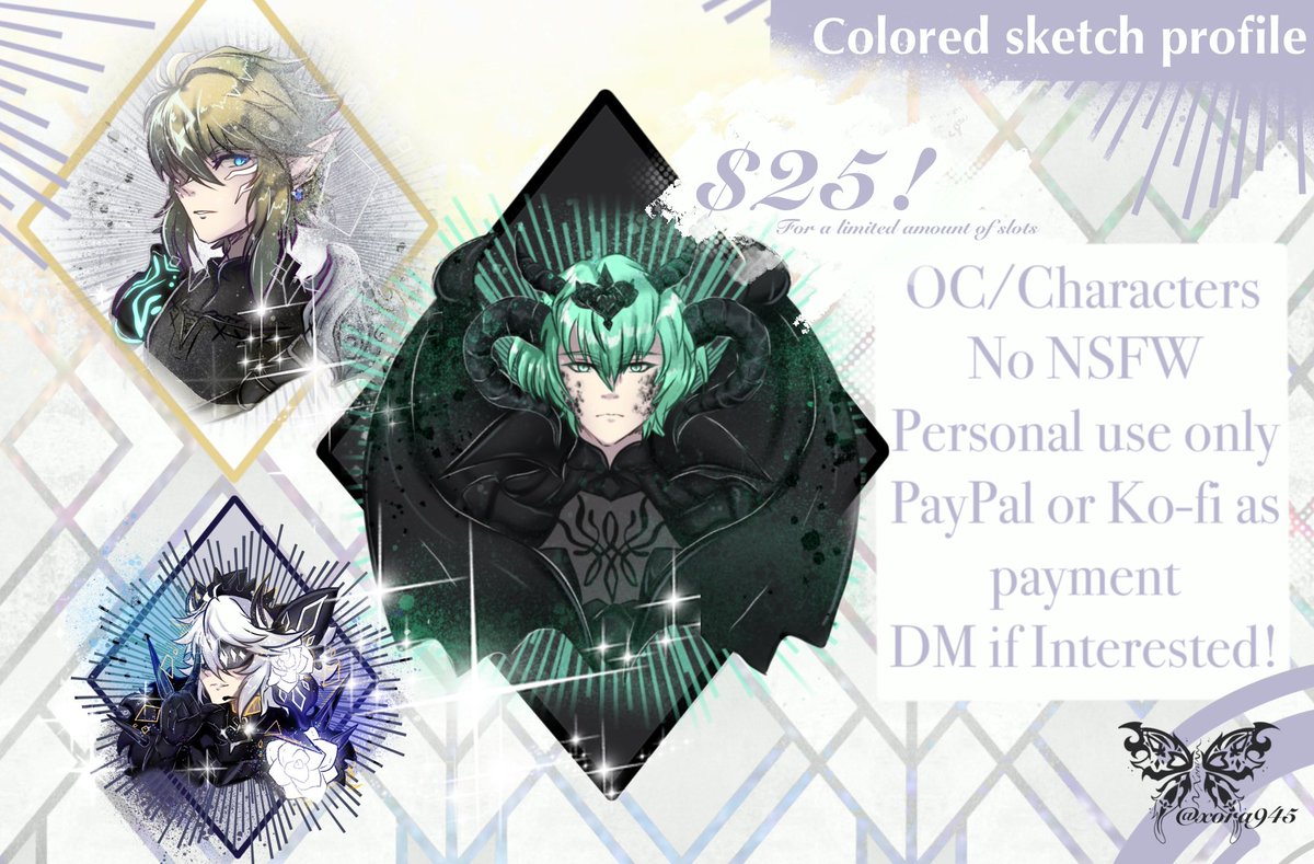 ◇(RTs Appreciated!) ◇ 🦋COMMISSIONS🦋 [Colored Sketch Profiles!] ◇ Hayo everyone! For a limited number of slots I will only charge $25 for a colored sketch! 👀✨ Opening 5 slots!!! DM if interested! #commissionsopen #commissions #ArtistOnTwitter