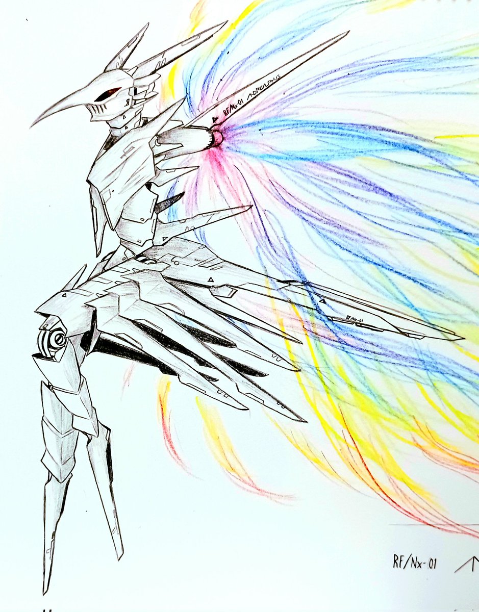 #絵描きさんと繋がりたい #アナログ絵描きさんと繋がりたい #うちの子 #オリキャラ 新キャラ「RF-A02 デモリッシャー」です。どうぞよろしく。