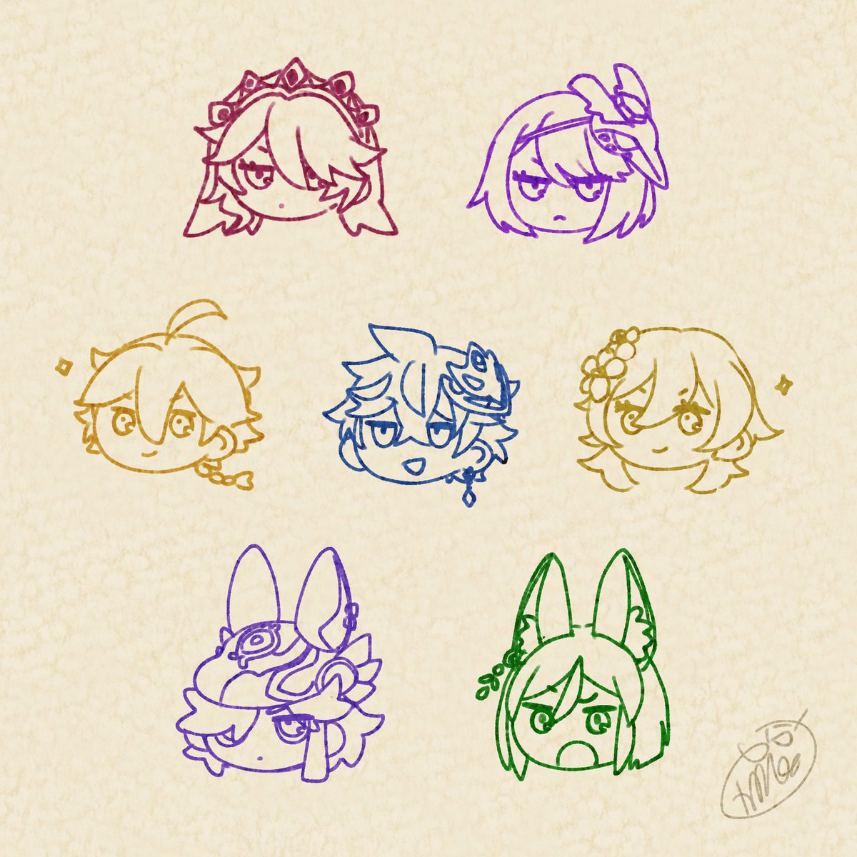 1 6 いつもよりゆるい感じの2頭身ぐらいのデフォルメを描いてみたかったのでちょっと練習…😂 23/03/18 00:22