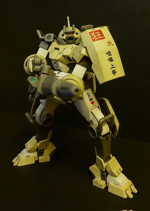 #水星の魔女Noガンダム祭 再掲ですが、チュチュ専用デミトレーナー、「ヤンキーデカール仕様」。 シールドにはヤンキー魂の「狂犬」「喧嘩上等」、胸部(腹部?)には郷土愛の「地球」、左太ももにはニカ姉への愛を込めて……。 3枚目はお約束。 #ガンプラ #水星の魔女