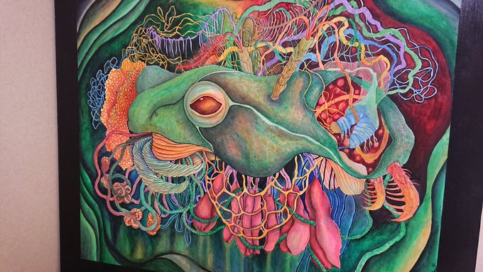 1 4 カエル様と久しぶりに会ったのです #絵 #水彩 #カエル #内臓 #植物 21/03/22 12:43