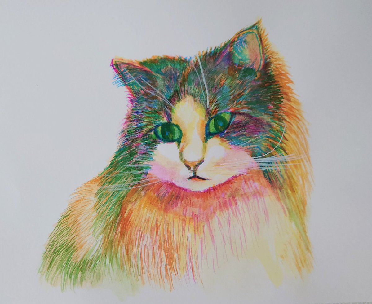 うちの猫 #猫 #絵 #水彩 #三原色カラー