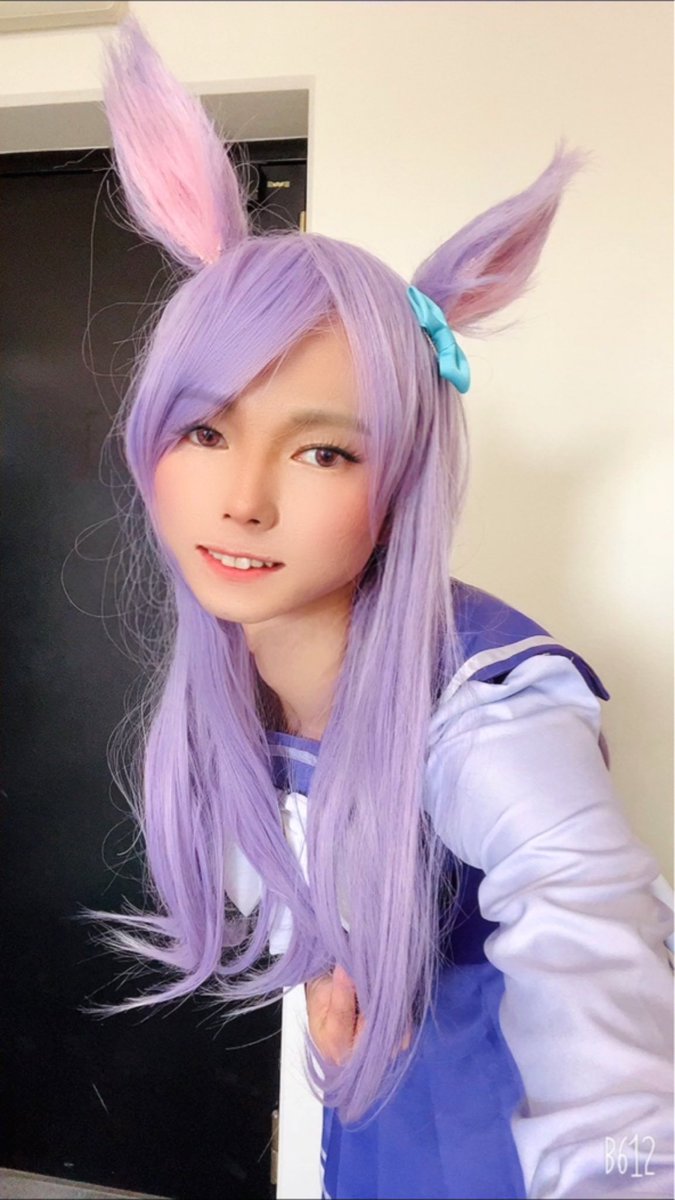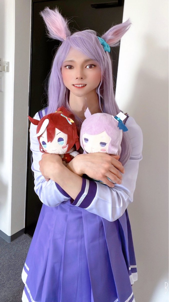 メジロマックイーンのコスプレをする社畜🐴 このコスしているときは、何食べても許される気がするんだ…(パクパクですわ!!🍰) そして、リボンの位置逆でした(よよよ…) #ウマ娘になってしまいました #コスプレ