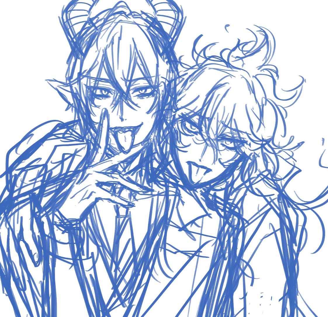 ラフは2パターン(推し🐉&💀/冥府) #このタグを見た人はラフ画とその完成絵を見せる