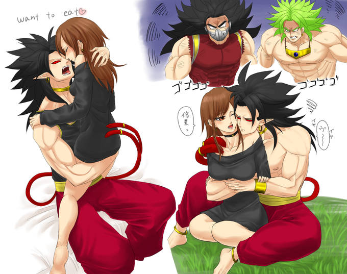 10 19 @aishanacchan 愛射さん!!一回消しちゃってごめんなさい!!前に話してたブロリー、カンバーに修行つける♂化カルア描きましたのでお届しますーー!!! 20/06/17 23:04