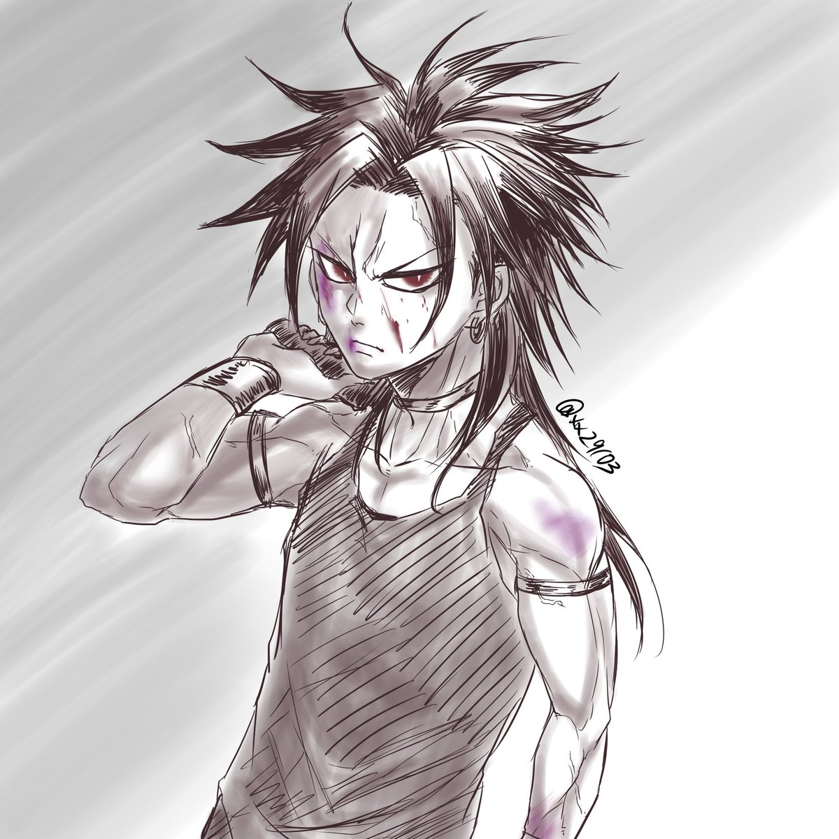 やっと描けた…。 久しぶりにお絵描き出来たので、自分の事めっちゃ褒めたいと思います。 (最後だと(多分)思うけど、それよりまず最初に言いたいのは…年納め絵にしちゃあダーク過ぎた) #ブロリー #今年最後のイラスト