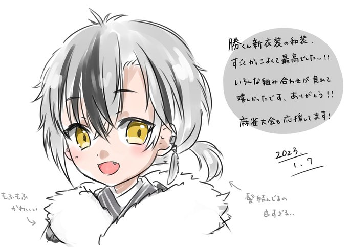 38 174 勝くん、新衣装お披露目お疲れさまでした……!! とても嬉しくて勢いで描いた デザインも細部まで拘られていて本当に最高でした! ありがとう… #漆黒の水鏡 23/01/07 12:22