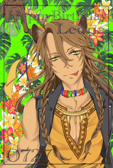 🌿🌺🌼🌿 Happy Birthday Leona 🌿🌼🌺🌿 ま、まにあった〜_(┐「ε:)_✒️ 改めましてお誕生日おめでとうございます✨👑🎁🎂🍖🎉✨ #レオナ・キングスカラー生誕祭2021 #おじ誕 #ツイステファンアート