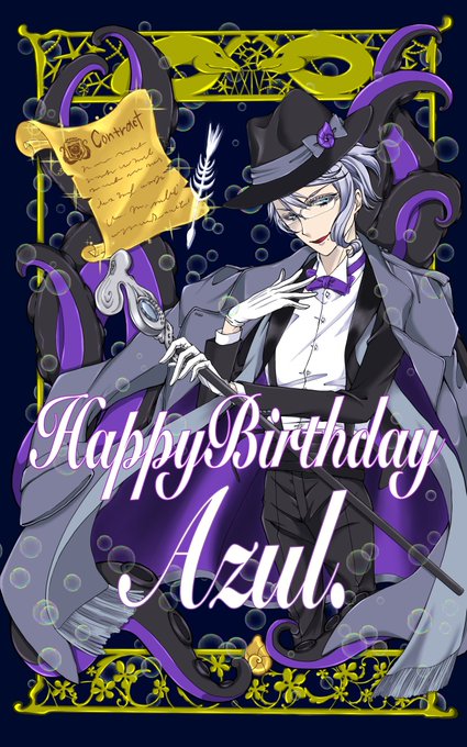 やっとできた…_(┐「ε:)_\🐙 🎩✨🐙✨📄✨🖋✨🐚✨ アズール先輩推しのffさんのお怪我からの早期回復祈願を込めて描きました💫 🎩✨🐙✨📄✨🖋✨🐚✨ #ツイステファンアート #twstファンアート #ツイステ