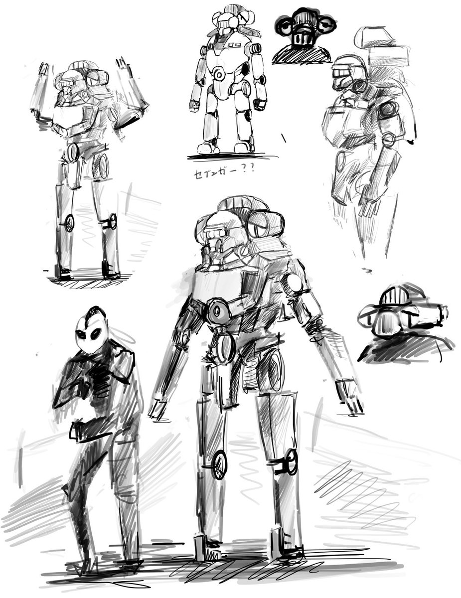 レトロロボ_WIP ヘキサギアのガバナー様と並べたりして。 一応1/35想定でいます。 #blender #b3d #WF2023S #Robot #オリロボ