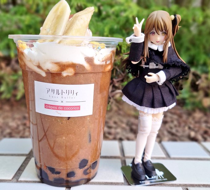 アサルトリリィ Last Bullet × ココリコのコラボ、2回目参りましたわ🎵 今日は「一葉と恋花のタピオカ入り濃厚生クリームバナナラテ ~星が見えない君へ~」を頂かせて貰いました 濃厚な生クリームとチョコレートが混ざって美味しかったですわ❤️ #アサルトリリィ #ラスバレ #アサルトリリィドール部