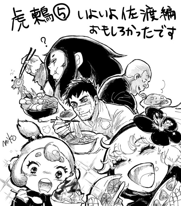 虎鶫⑤読みました!いよいよ佐渡編、話も佳境に入りつつある感じ。つぐみちゃんとたまちゃんにおいしいものたらふく食わせたくなって、新潟市一瞬で通過しちゃったけどフェリー乗り場のある万代周辺のグルメをお楽しみ頂くファンアートを描きました!✨ #虎鶫 #TSUGUMIPROJECT