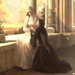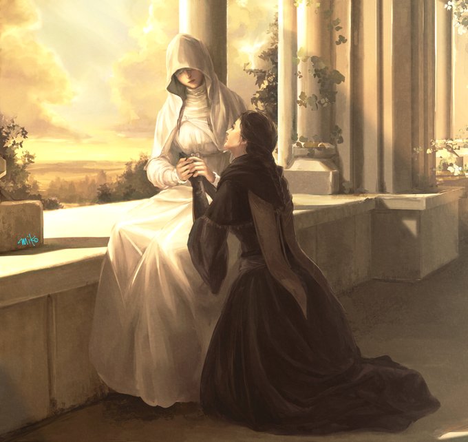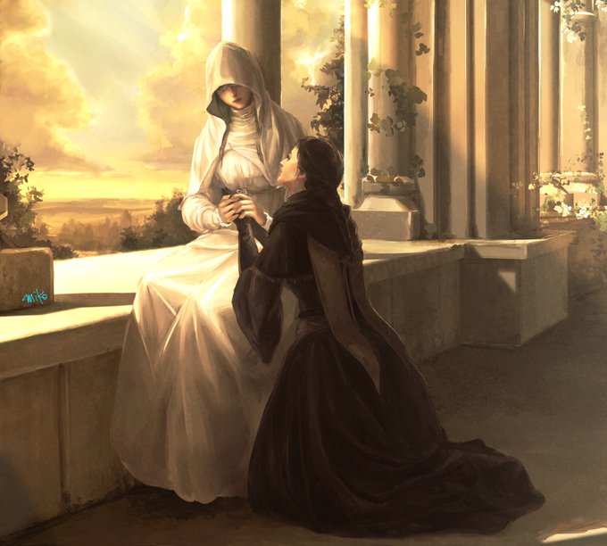 ストーリー上の絡みもないし立場が違いすぎる気はするけど、エミーリアたんとアデーラさんて面識あるのかな・・・実はおな修(同じ修道院)出身とかだったらいいな・・・と思って描いた妄想絵。 #Bloodborne