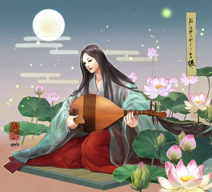 【お仕事】skeb納品させて頂きました!リピートご依頼ありがとうございます!!✨紗の単衣って結構しっかり透けるものだったんですが、全年齢向けイラストなので琵琶で隠してみました・・・🫣☺️ skeb.jp/@xx_mikomiko_x… #Skeb #Commission