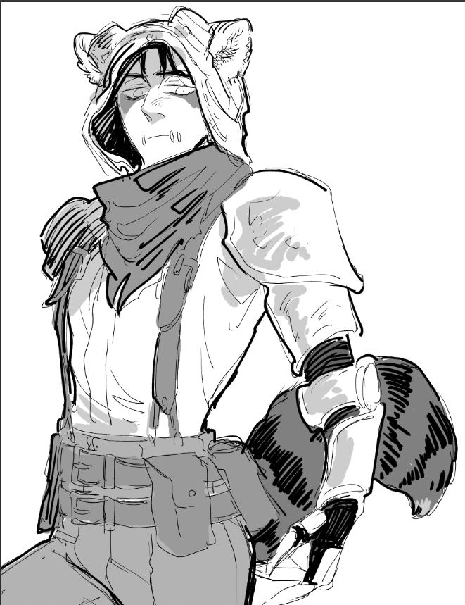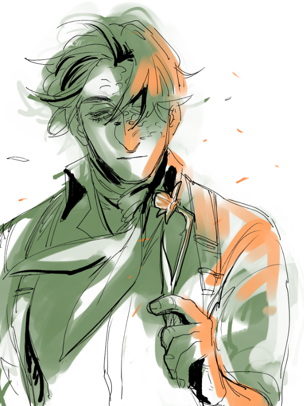 32 266 適当に色をピックして線画の上に通常レイヤー、ペン濃度50以下で塗って細部の線をなんとなく起こした完全テブロ再現塗り 23/02/08 05:05