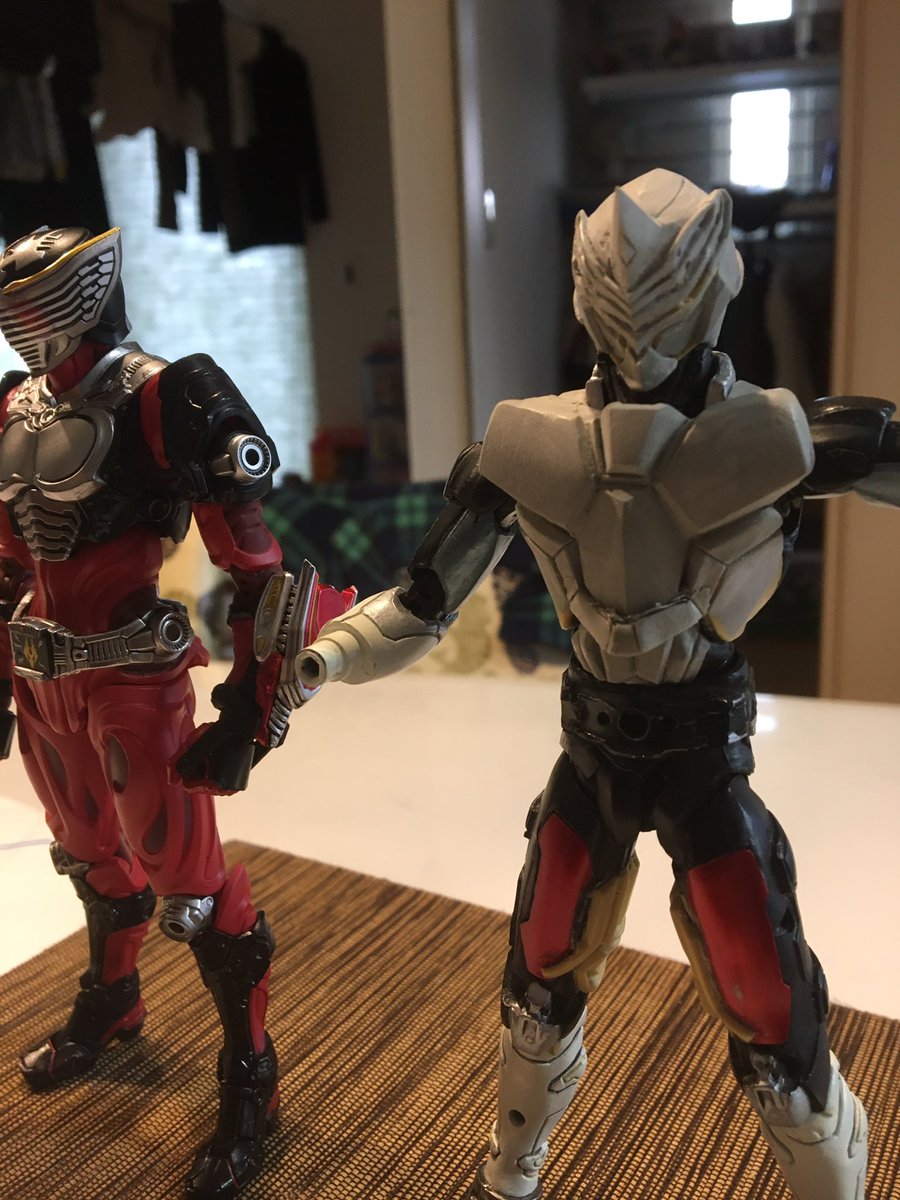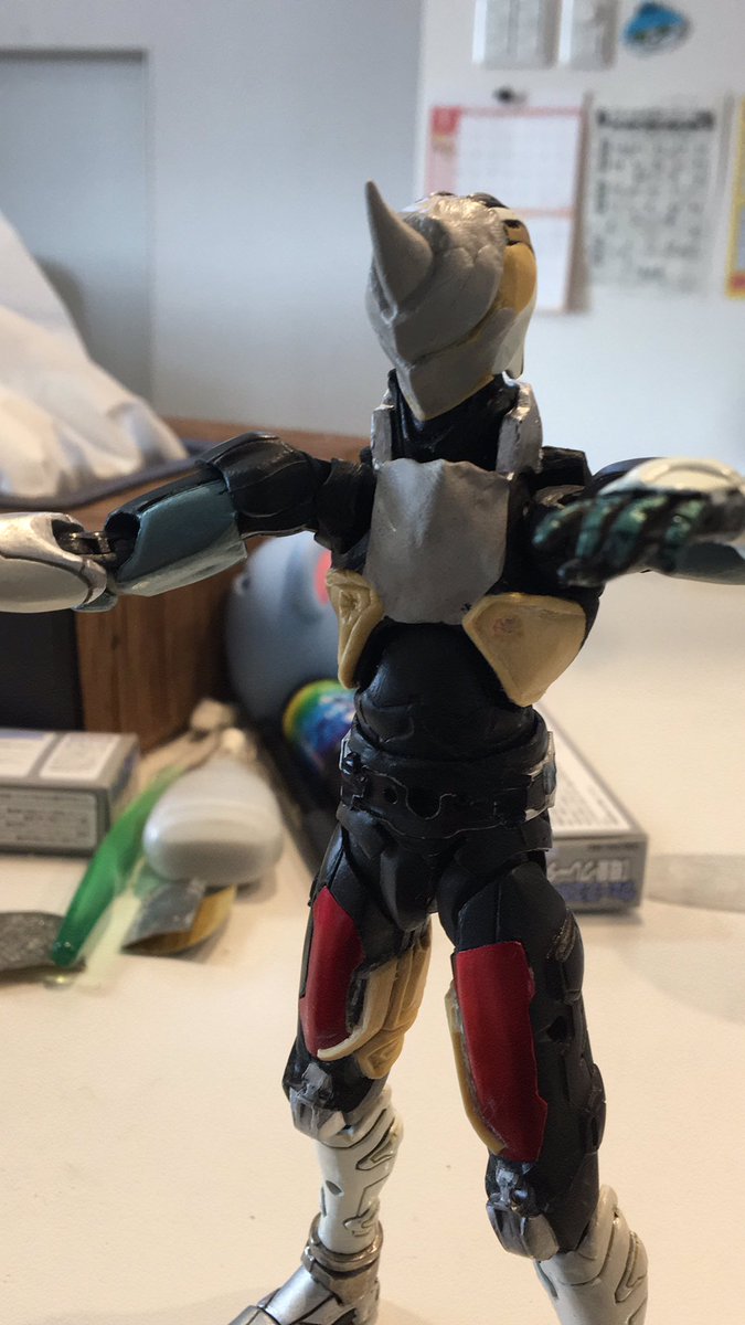 #ニチアサフィギュア改造部 SICレーザーターボ&ゾンビゲーマー 付属品は完成してはないですが こんな感じになりました。オフ会移動中に少しハゲました笑 次は仮面ライダーゼロワンと仮面ライダークロノスに挑戦していきたいです。