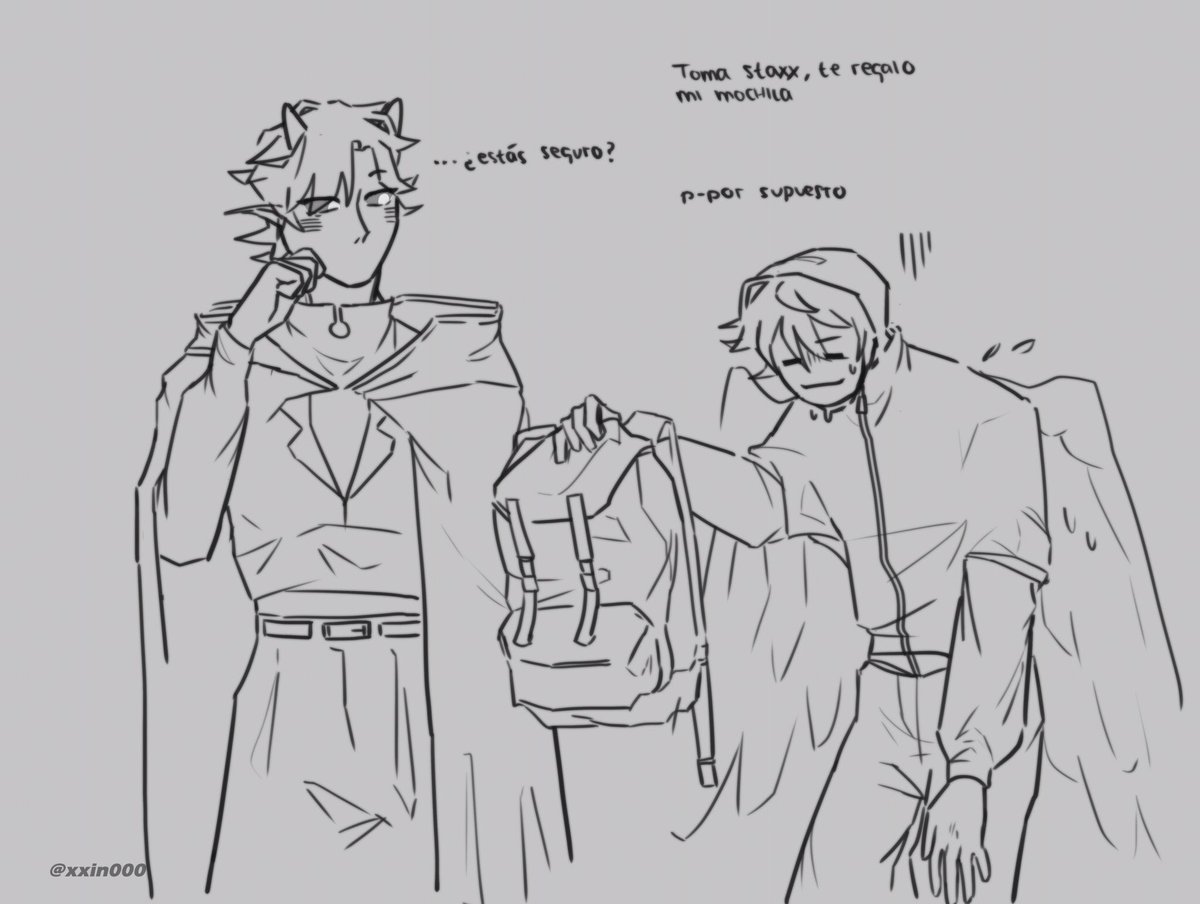 tenía el hc de quackity dándole su mochila a staxx por q le molestaban sus alitas 🥸 #KarmalandV #Karmalart