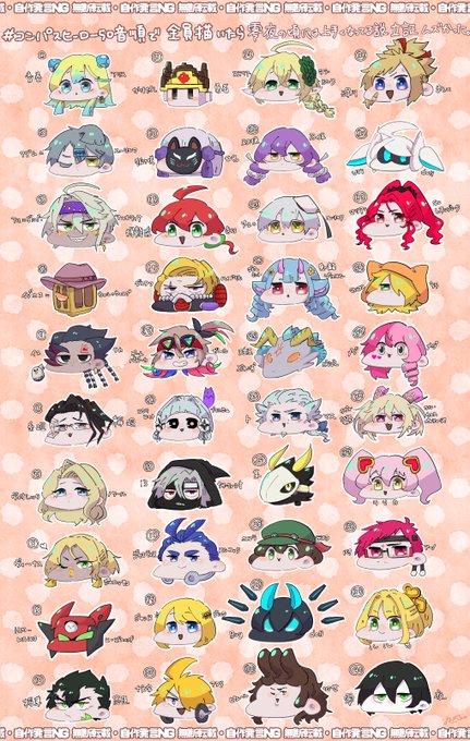 #コンパスヒーロー50音順で全員描いたら零夜の頃には上手くなってる説 #コンパスお絵描き いつもの絵柄で40人!成長は一切感じられませんでした。 できる限り資料なしで書いたので一部省略している箇所ありますが許してください。