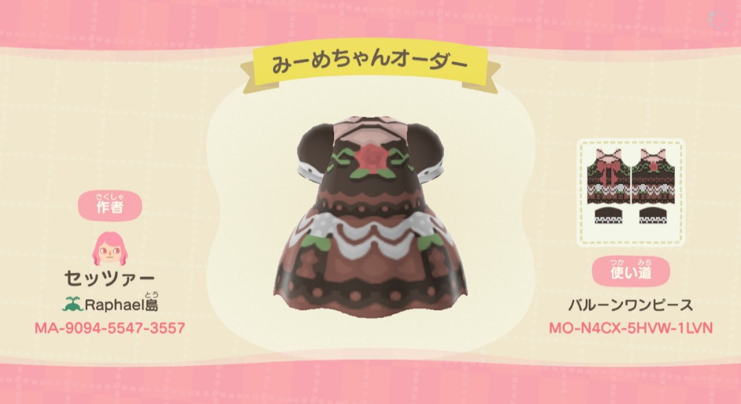 最近リアルが忙しくて低浮上ぎみですが…🥺💦 約一ヶ月ぶりにマイデザ描きました✨バレンタインには絶対作りたい…!と思っていたのでよかった🥰❤️ 紗◯ってチョコレートをモチーフにしたワンピです🍫💕デートに着ていきたい服を目指しました~! #あつ森 #マイデザ #レイナコレクション #バレンタイン