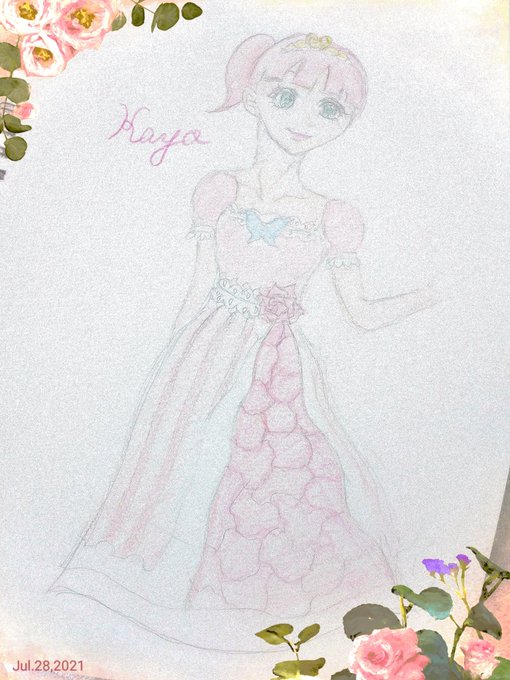 2 24 今日のマイデザ描き起こしキャンペーンはKayoちゃん(@kayolovecolton2)のドレスです✨ アナログ画を撮ってSNSに載せるのむずい…めちゃめちゃ色薄くなる😭💦 自分のマイデザながら描くの難しかった😇 気に入って貰えるだろうか…! #マイデザ #絵 #イラスト #ドレス #色鉛筆画 21/07/28 11:41