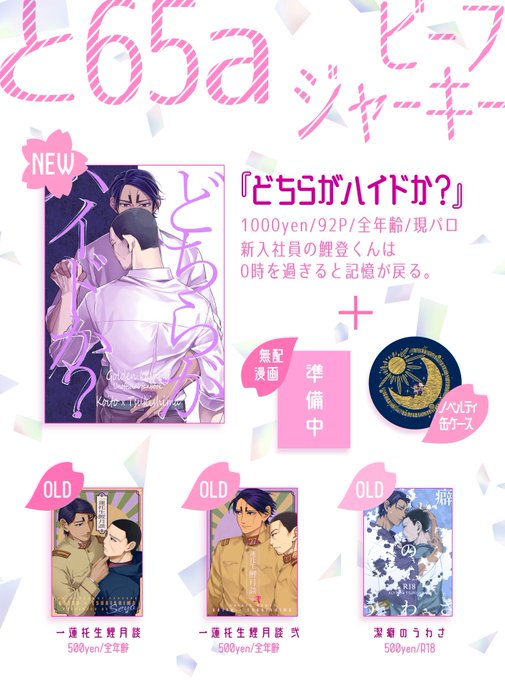 3/19 少尉殿につきっきり4 お品書き 新刊『どちらがハイドか?』A5/92P/1000円 サンプルpixiv.net/artworks/10582… 鯉月ロードのはじっこにいます!※無配とノベルティは先着 また、サークル様向けに18日24時までトリオキニで新刊とノベルティの取り置きを行います☺️→triokini.com/circle/item/13…