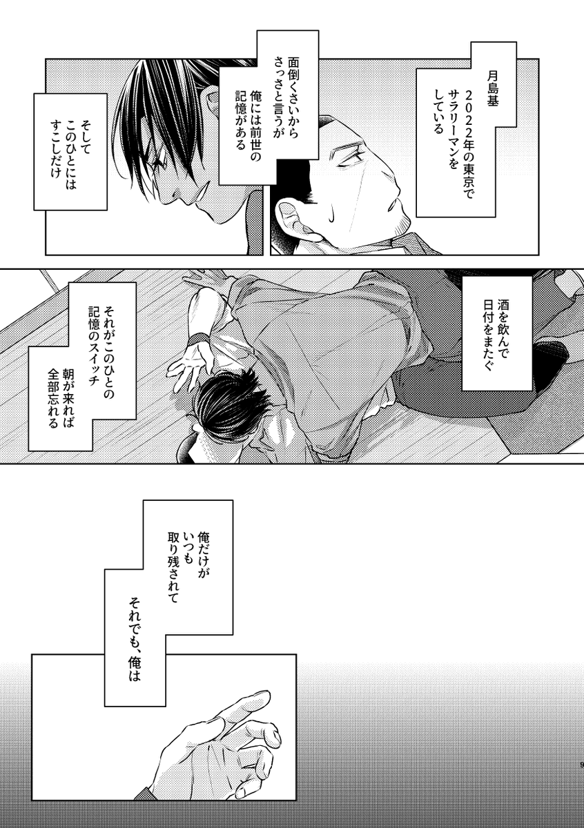 3/19春コミ 少尉殿につきっきり 新刊サンプル 『どちらがハイドか?』A5/92P/会場頒布1000円/全年齢 や~~~っと形になった現パロ鯉月です 記憶が夜だけ戻るコイトと、ずるずる流されるツキシマをお楽しみください!→詳しくはピクシブでpixiv.net/artworks/10582… ※通販はのちほどツリーに下げます