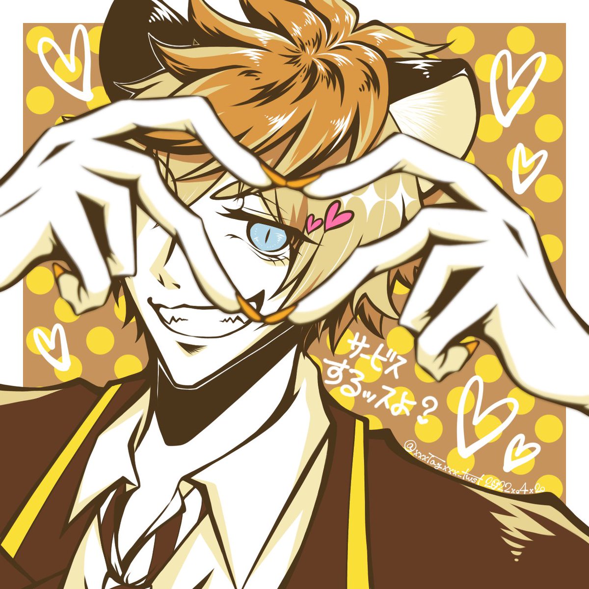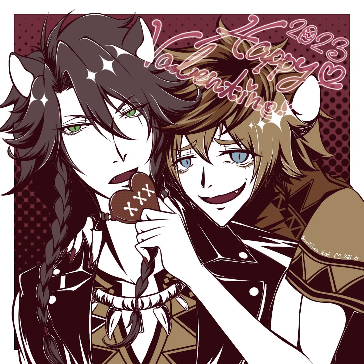 #twstファンアート 出遅れバレンタイン❤️ラレ🐆🦁 WDは💀🐙で描きたい(意気込みだけはある!) VDなのでチョコレートカラーをイメージしてみました💕 🐆『この人に手出したら… ただじゃおかないっすよ?』 #twst_BL