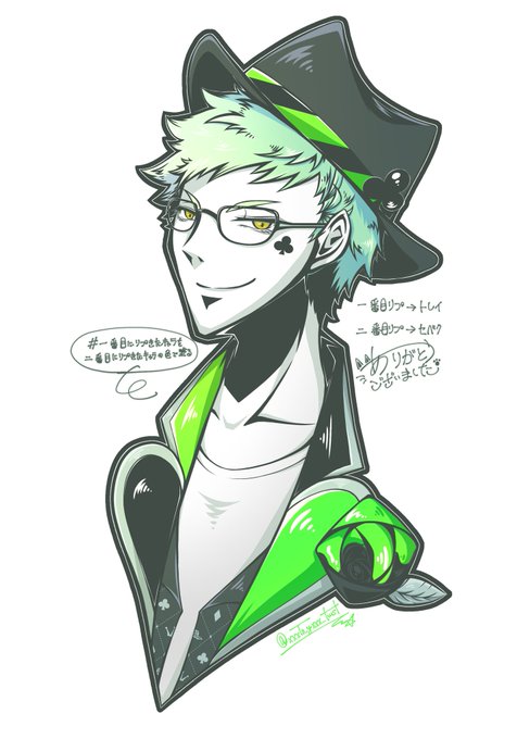 # 一番目にリプきたキャラを二番目にリプきたキャラの色で塗る を勝手に続けてみた笑 二番目のリプ→セベク 三番目のリプ→フロイド リクエストありがとうございました! 初描きセベたん💚 次フロイドを描くので twstキャラで四番目のリプどなたかお願いしまーす✨ #ツイステファンアート