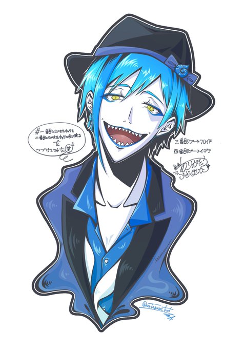 # 一番目にリプきたキャラを二番目にリプきたキャラの色で塗る を勝手に続けてみた笑 三番目のリプ→フロイド 四番目のリプ→イデア リクエストありがとうございました! 🦈めっちゃ久しぶりに描いた! 2年ぶりくらい?笑 次💀→♣️(色)で最後にします✨ がんばるぞー✨ #ツイステファンアート