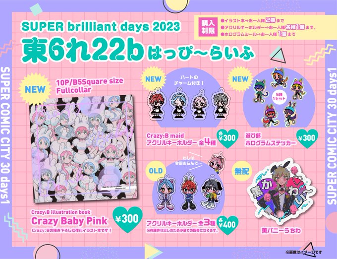 62 235 🍒おしながき🍒 5/3 SUPER COMIC CITY 30 SUPER brilliant days 2023 【東6ホールれ22b】はっぴ〜らいふ 今回のブリデは己の趣味全開です🤍たのC〜❣️ 2枚目はイラ本のsample💘 ほぼスリコプライズで出品します✌️ 対戦よろしくお願いします♬ 23/04/20 18:07