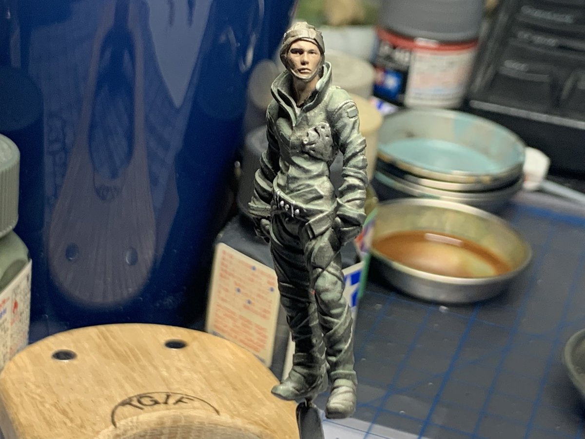 LOVELOVEGARDENの1/35 MK44 Male Pilotを塗っています。もう少し陰影を書き足しましょうそうしましょう。 #マシーネン #LOVELOVEGARDEN #MK44MalePilot