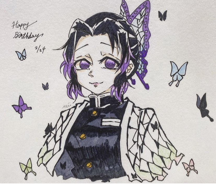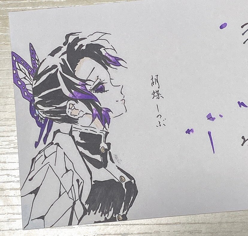 #みんな何時間で1枚の絵完成させてんの ①胡蝶 約2時間半 ②我妻 約3時間半 ③宇髄 約1時間 ④胡蝶 約4時間 絵を描きながら 動画を見たり、他ごとを始めたりするので 結構時間がかかります😌