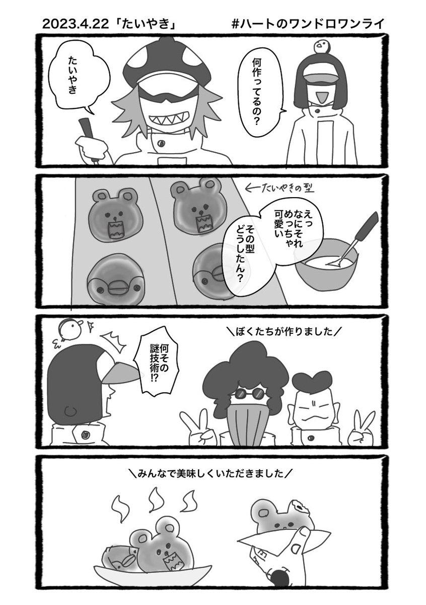 #ハートのワンドロワンライ お題「たいやき」 事前準備/時間超過無し ワンドロ、初参加させていただきました!🙌✨ 4コマ漫画での参加で失礼いたします…! 主催者様、可愛らしいお題をありがとうございました✨🥰✨