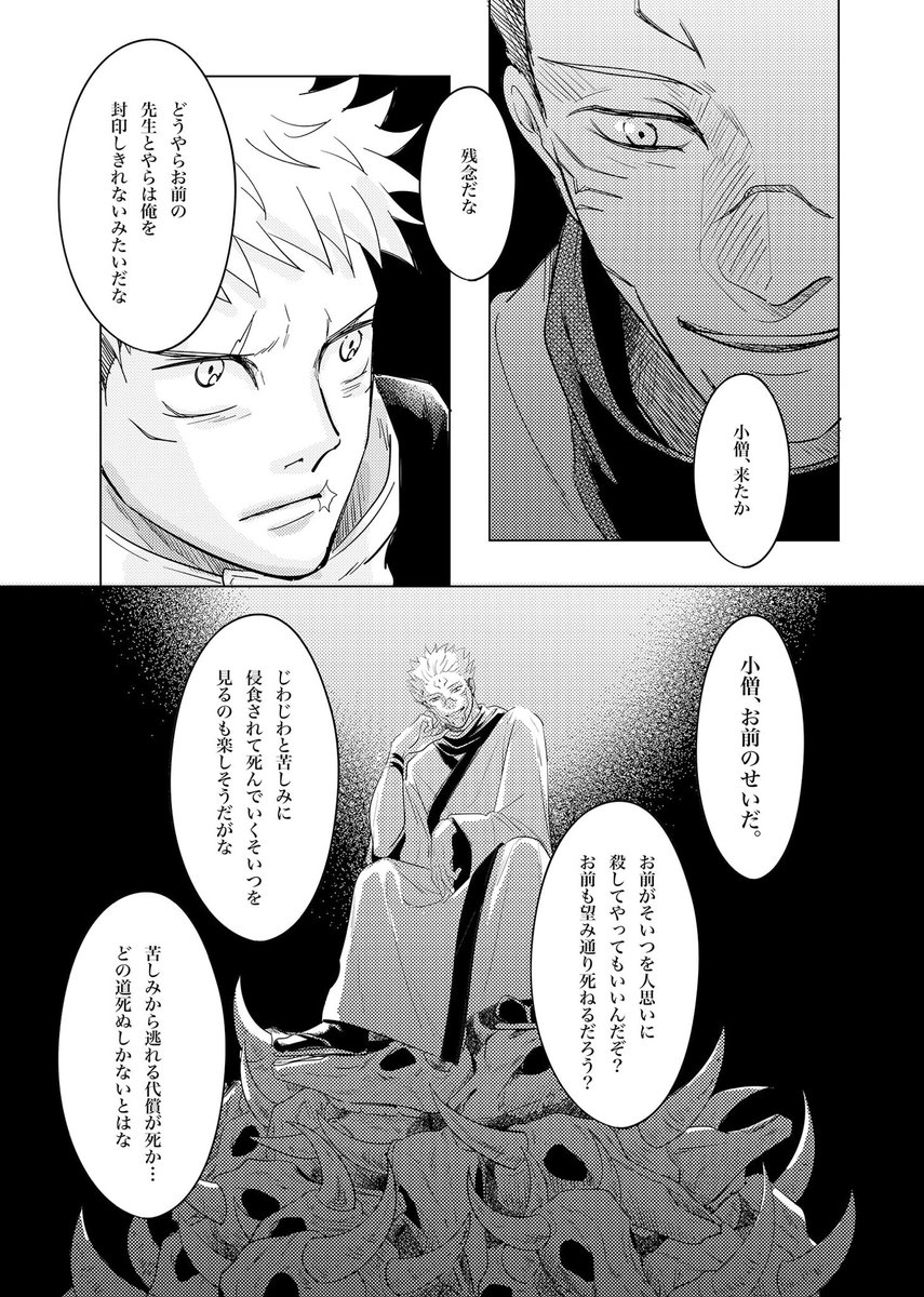 #五悠 原作軸漫画連載 『ディープノート』後編① 前作エンドロールで指を体内に封印したせいで不調になる5️⃣を🐯が助ける話。ハピエンです! 空🍊5onで展示していた前編の続編です。 『ディープノート』前編はこちら↓ poipiku.com/4164859/755118… 前作↓ 『エンドロール』 poipiku.com/4164859/751223…